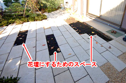 写真の中で所々、黒く空いている箇所は、花壇にするためのスペースです。